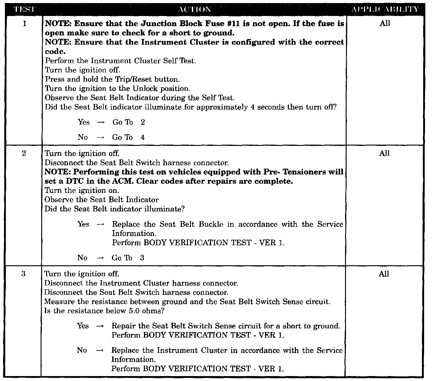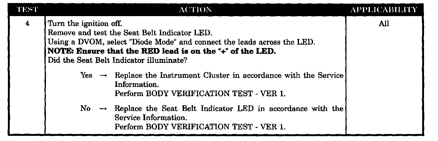 SEAT BELT INDICATOR INOPERATIVE