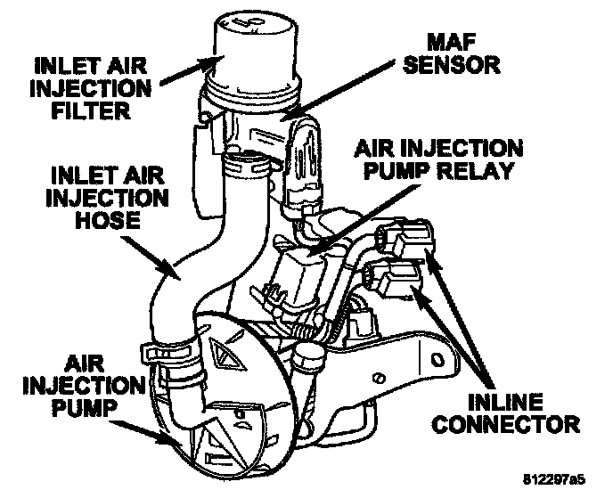 AIR INJECTI0N SYSTEMDuring vehicle cold start, the Air Injection System (MS) delivers a controlled amount of outside air into the exhaust system, upstream of the catalytic converters, in order to help reduce hydrocarbon and carbon monoxide gas emissions.