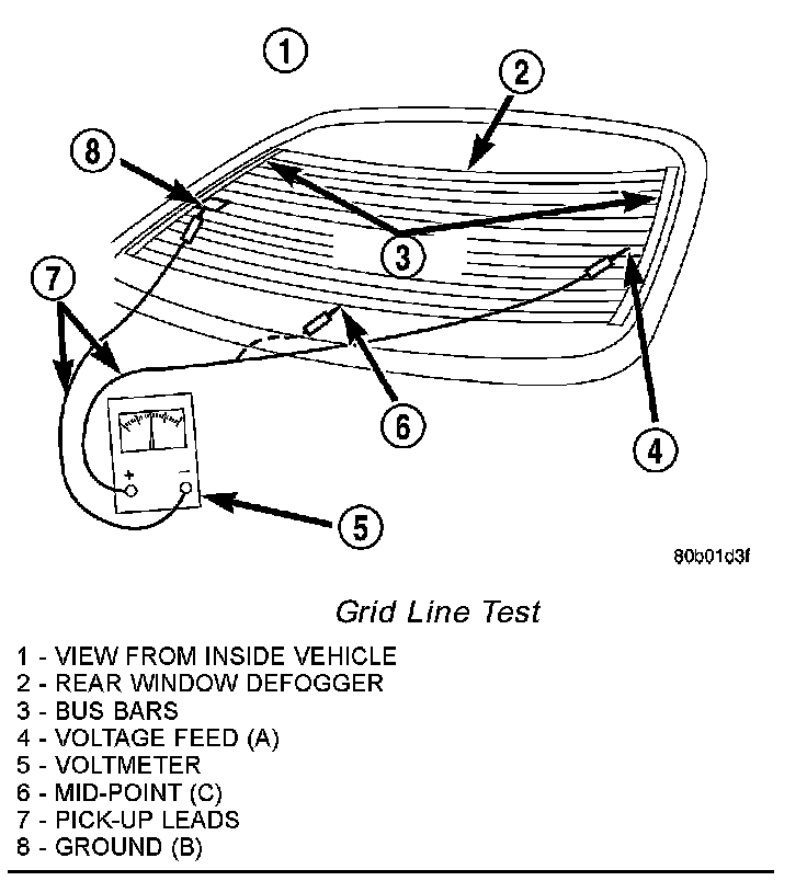 d. Rear window grid lines, all grid lines would have to be broken or one of the feed wires are not connected for the system to be inoperative
