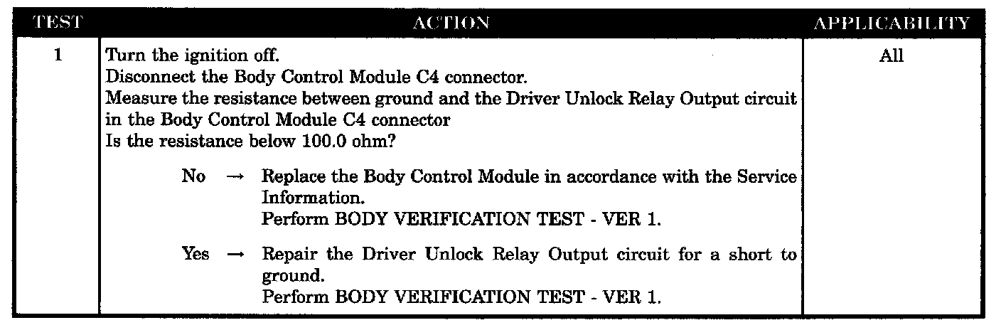 Driver door unlock relay output CKT short to ground