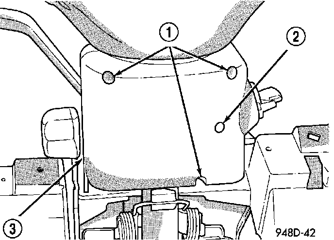 2. Place key cylinder in RUN position. Through the hole in the lower shroud (2), depress lock cylinder retaining tab and remove key cylinder.