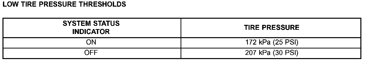 Low Tire Pressure Thresholds: