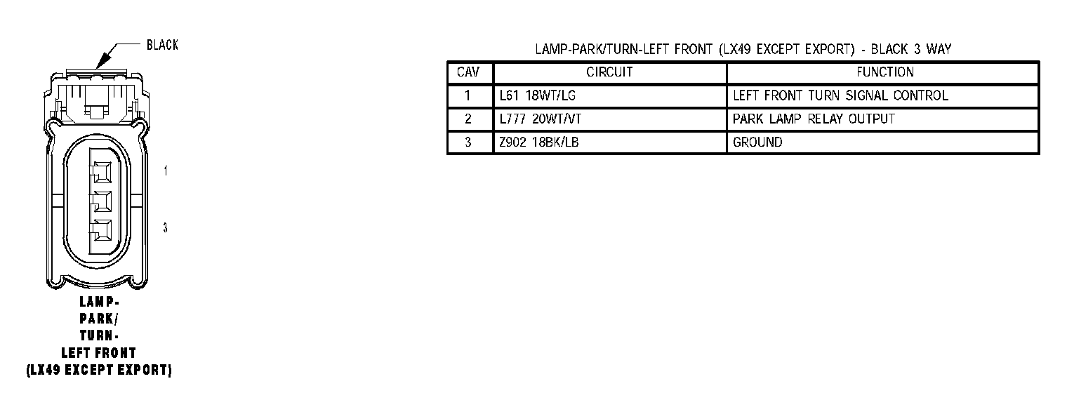 Lamp - Park/Turn - Left Front (LX49 Except Export):
