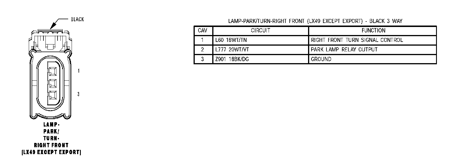 Lamp - Park/Turn - Right Front (LX49 Except Export):