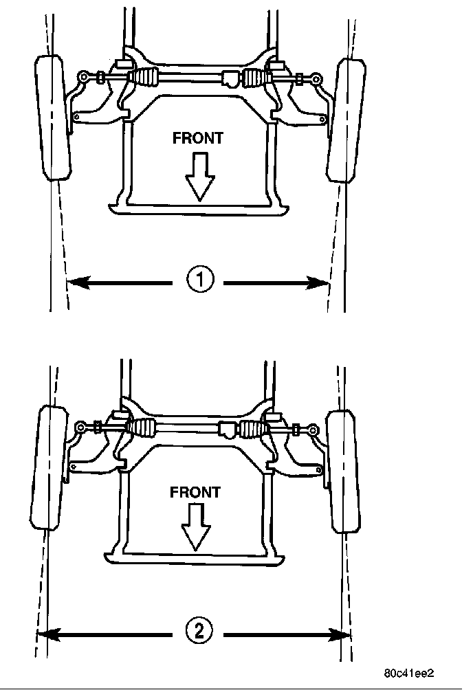 ^ Toe-in (1) is produced when the front edges of the wheels on the same axle are closer together than the rear edges.