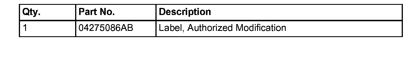 6. Type the necessary information on the "Authorized Modification Label" p/n 04275086AB and attach near the VECI label (Fig. 1).