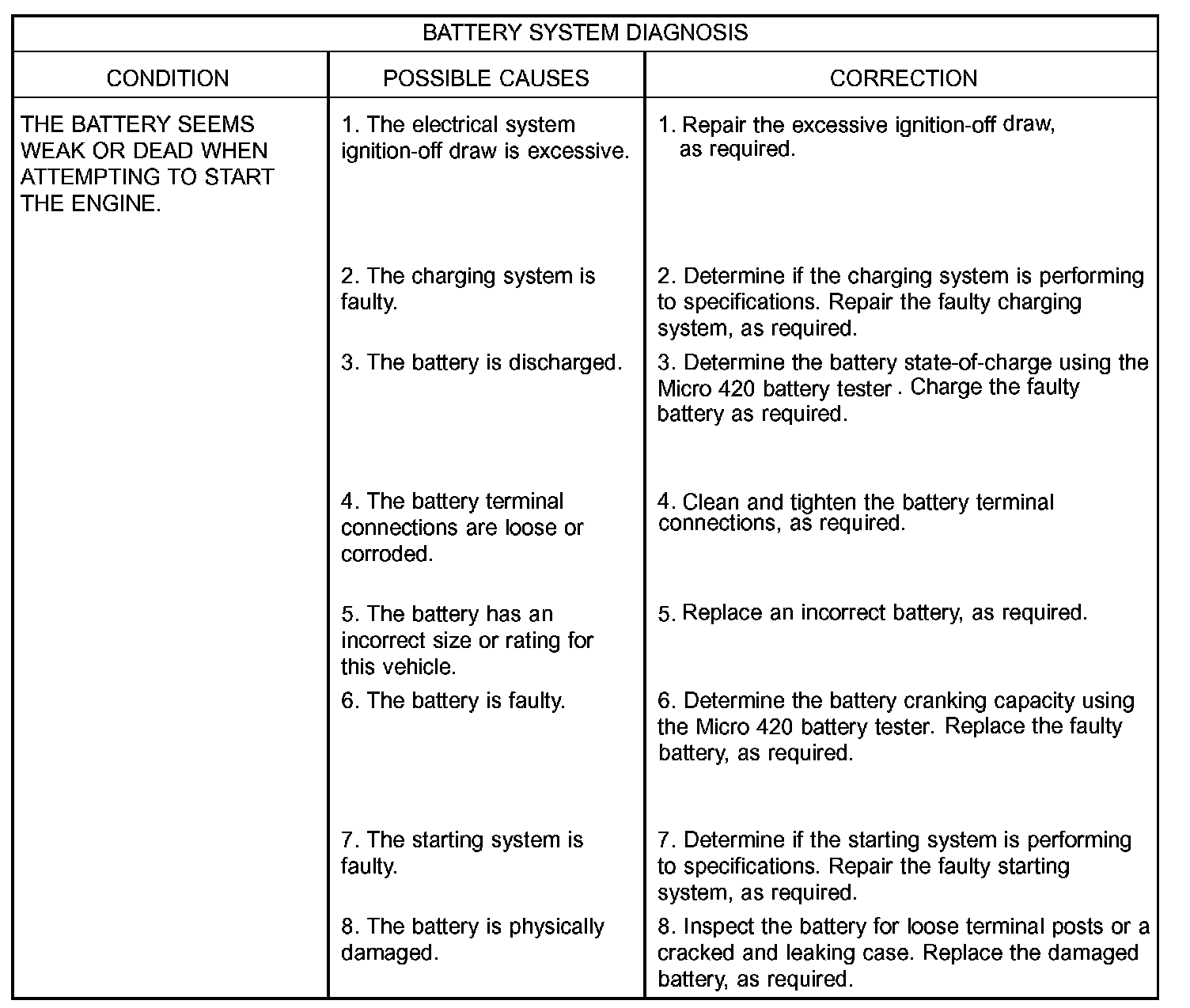 The Micro 420 automotive battery system tester is designed to help the dealership technicians diagnose the cause of a defective battery.