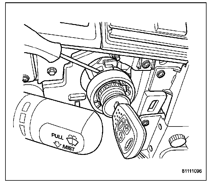 1. Install key in lock cylinder. Turn key to "ON" position (retaining tab on lock cylinder can be depressed).