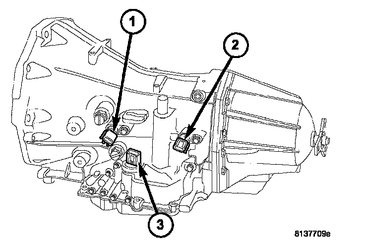 22. Connect input (1) and output (2) speed sensor wires and the transmission range sensor (3).