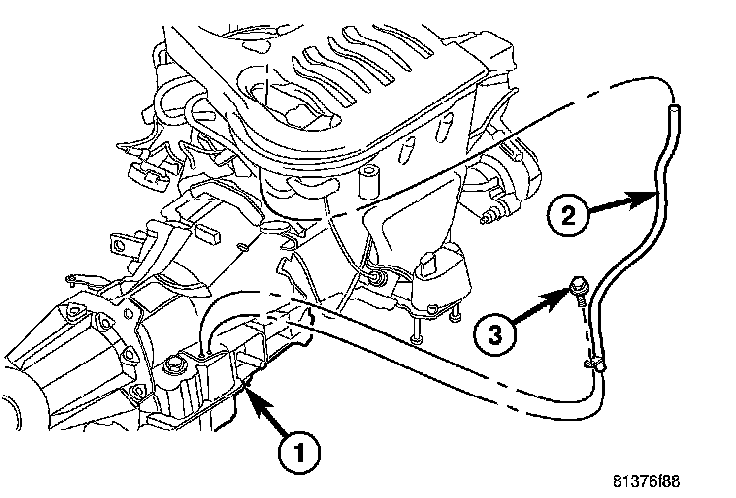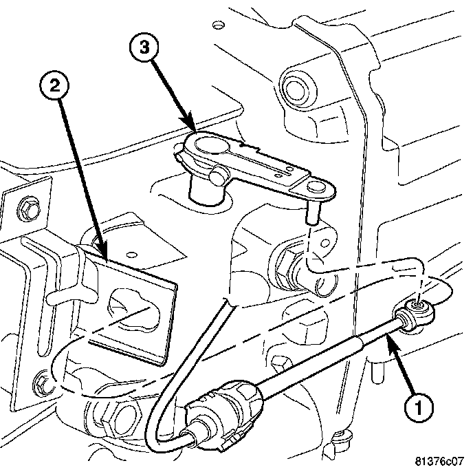 25. Connect the gearshift cable (1) to the transmission manual shift lever (3).