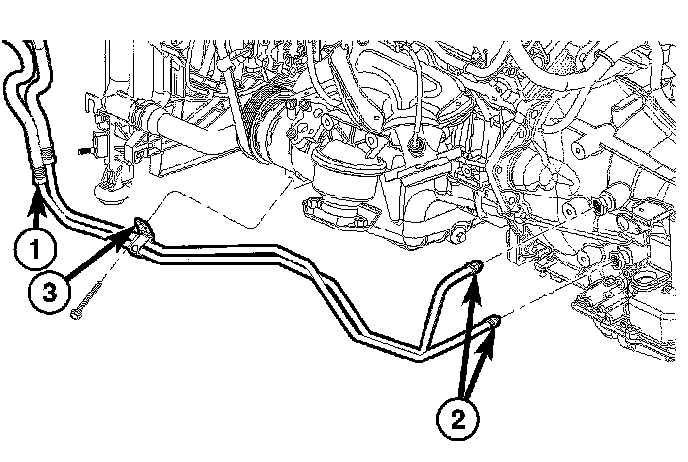 31. Connect the cooler line fittings (2) and cooler lines (1) to the transmission.