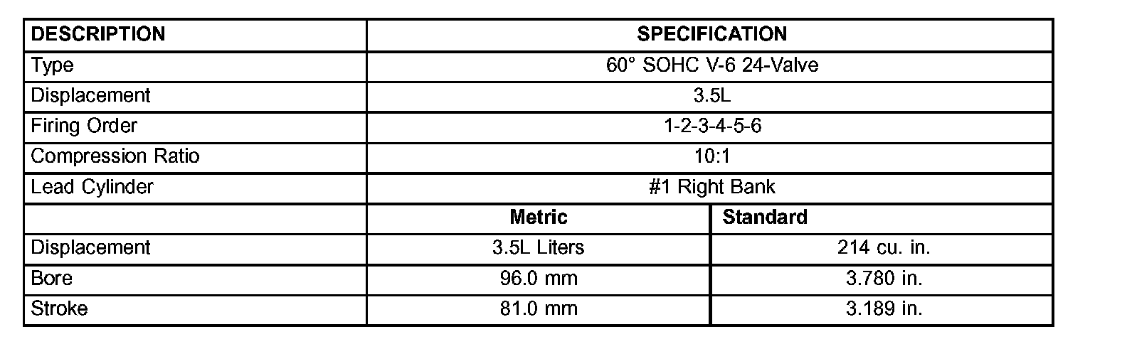 SPECIFICATIONS - 3.5L ENGINEGENERAL SPECIFICATIONS