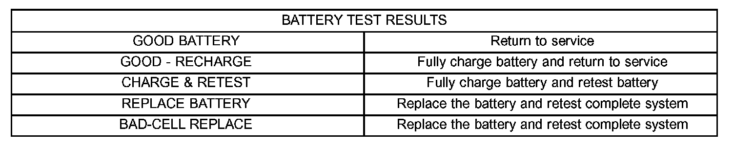 After the battery has been charged to 12.65 volts or greater, perform a load test to determine the battery cranking capacity. If the battery will endure a load test, return the battery to service. If the battery will not endure a load test, it is inoperative and must be replaced.