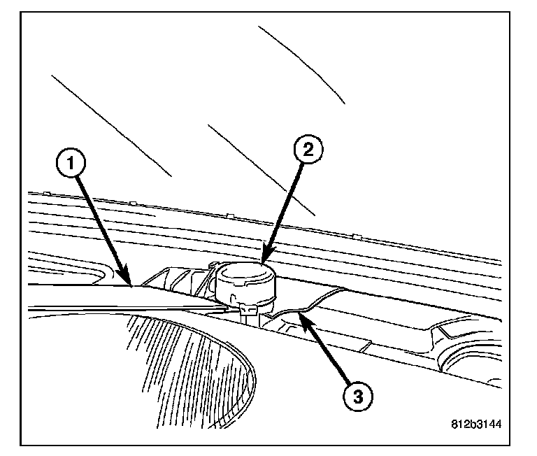 1. Position the sun sensor assembly (2) near the instrument panel (3).