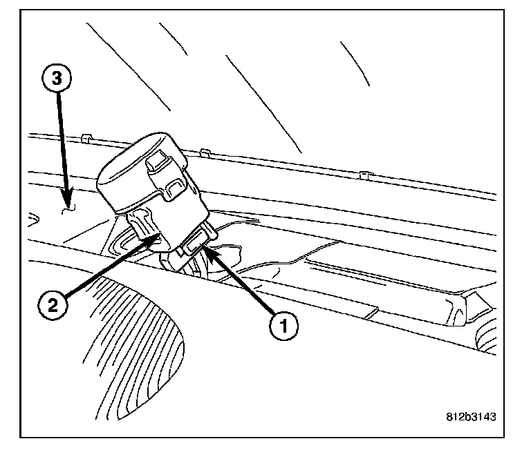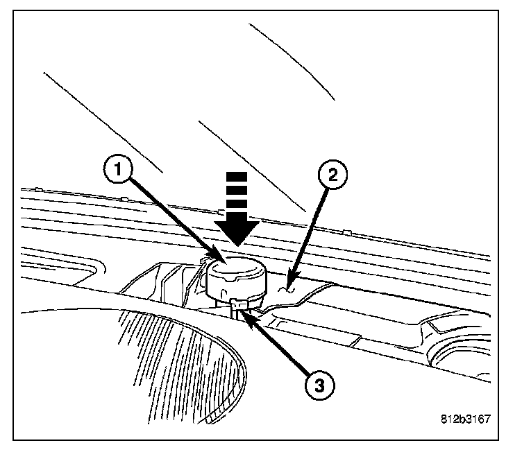 4. Gently push the sun sensor assembly into the instrument panel until the sensor snap clip retainers (3) are securely engaged.