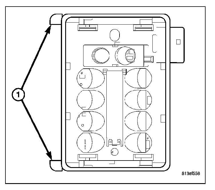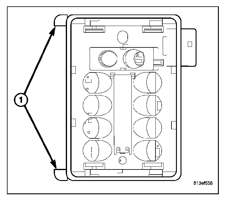 3. Push the slider cam locks (1) inward until they are flush with the side of the sensor case.