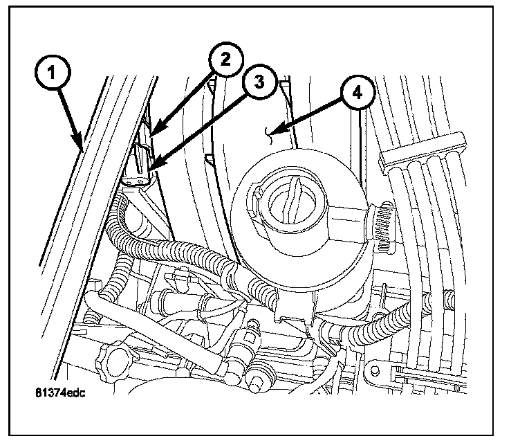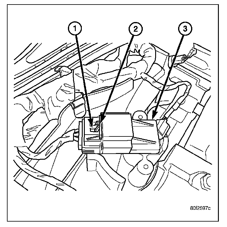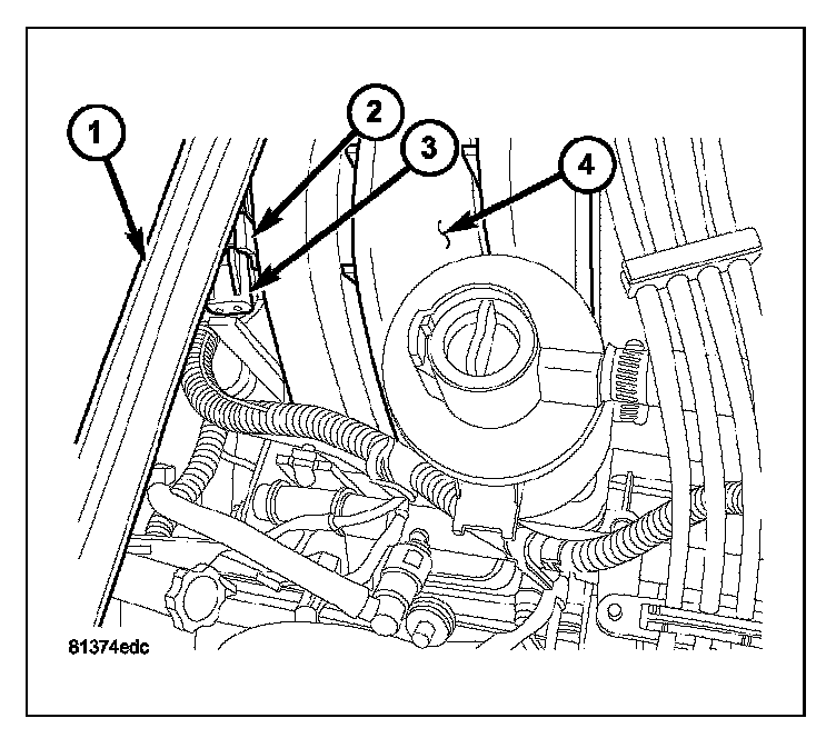 REMOVALThe Manifold Absolute Pressure (MAP) sensor (3) is mounted into the top/rear of the intake manifold (4) near the cowl/hood seal (1).