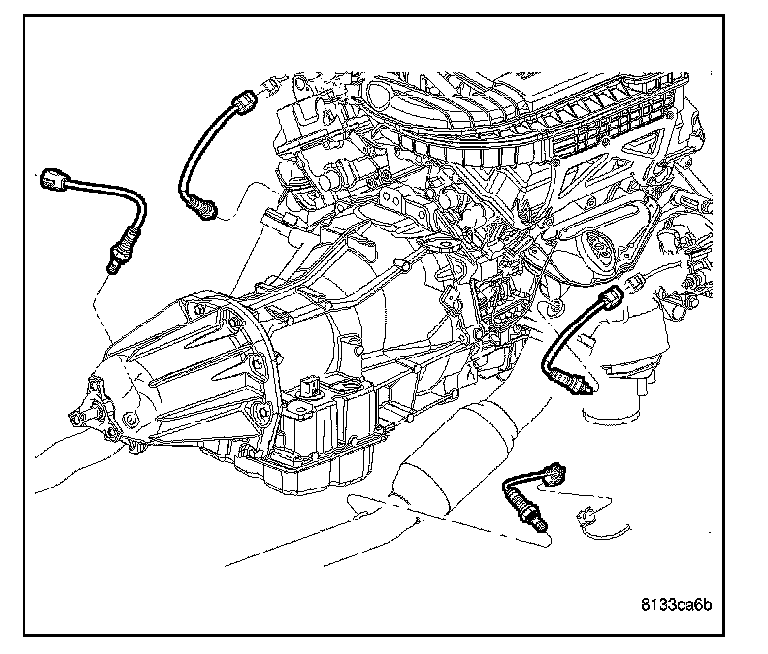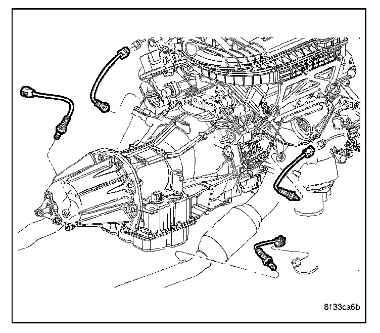 REMOVALRefer to graphic for typical O2S (oxygen sensor) locations if equipped with four oxygen sensors.