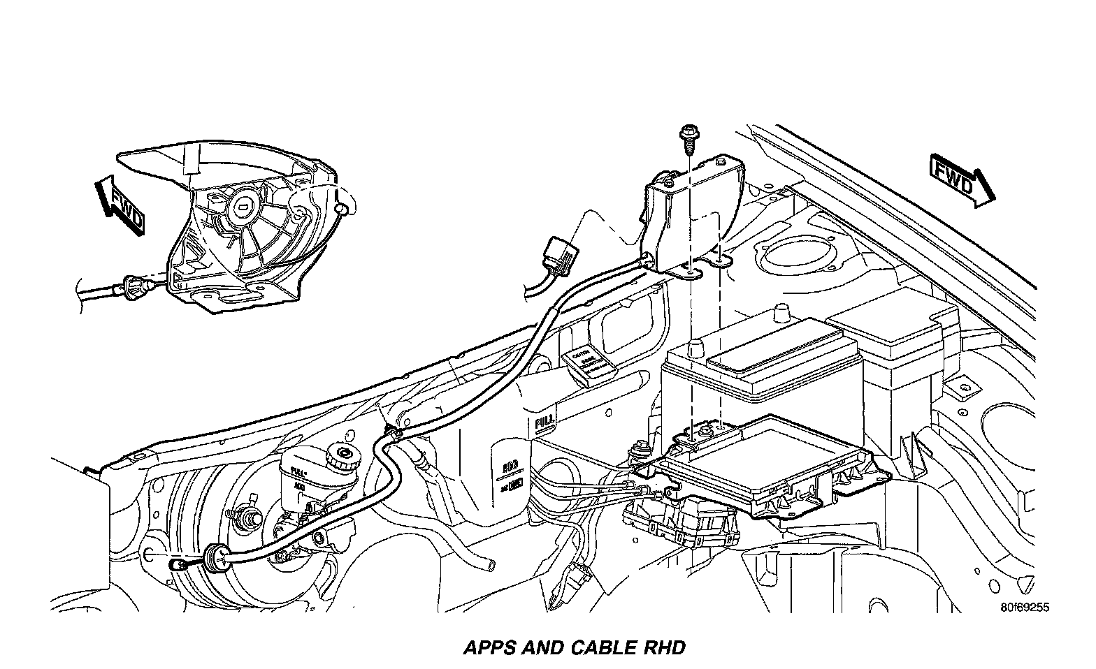 5. Open the APPS module cover and disconnect the cable from the cam and module.