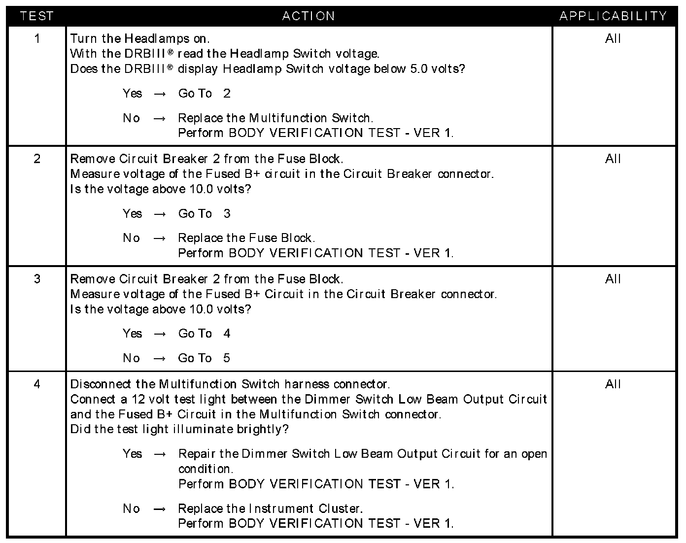 LOW BEAM HEADLAMPS WILL NOT TRN ON