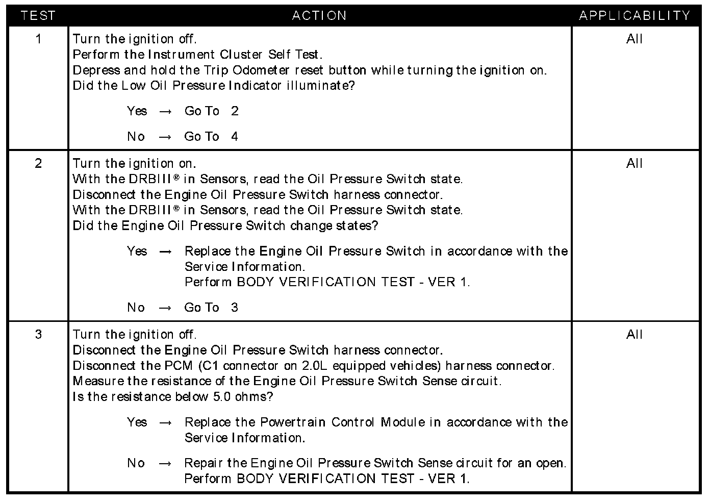 - Engine oil pressure switch sense circuit open