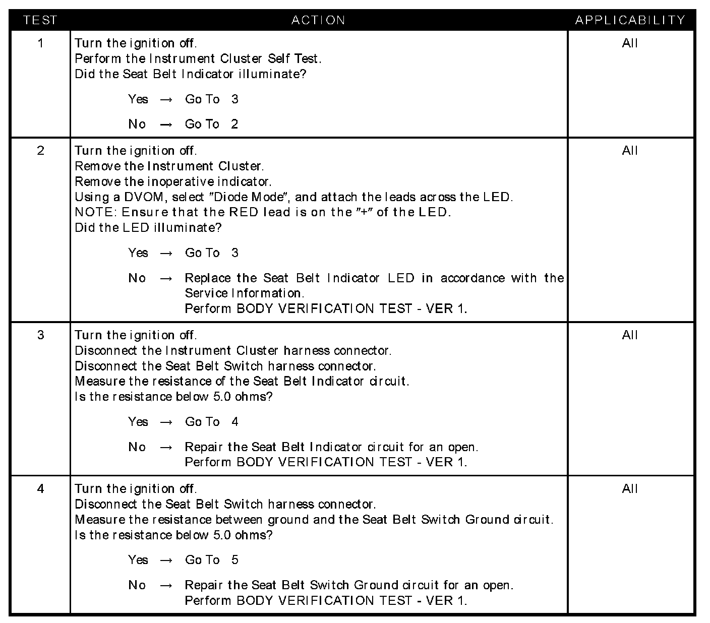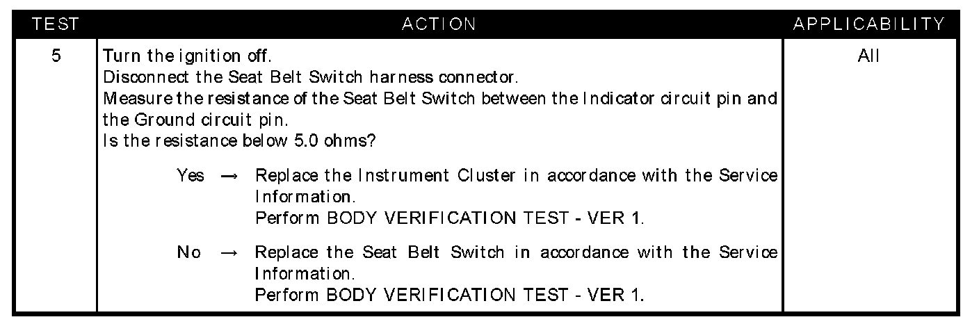 SEATBELT INDICATOR INOPERATIVE