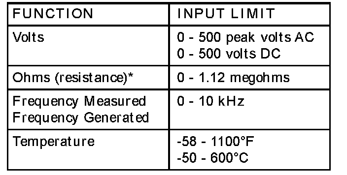 *Ohms cannot be measured if voltage is present. Ohms can be measured only in a non-powered circuit.