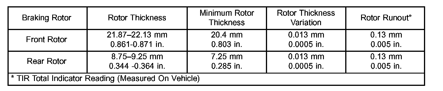 BRAKE ROTOR LIMITS/SPECIFICATIONS
