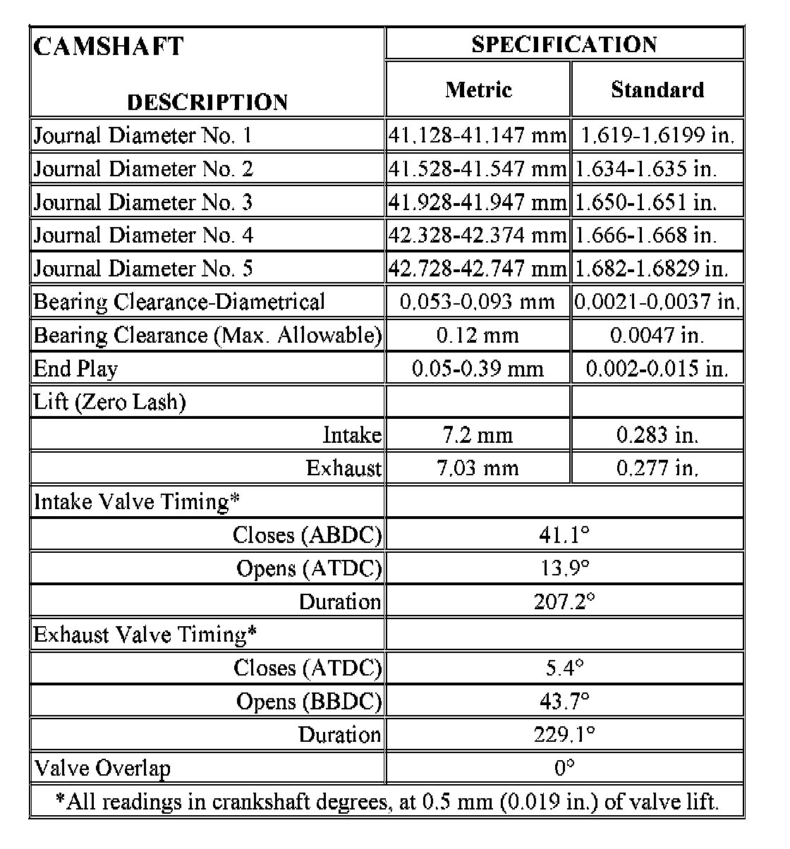 CYLINDER HEAD CAMSHAFT BEARING BORE DIAMETER