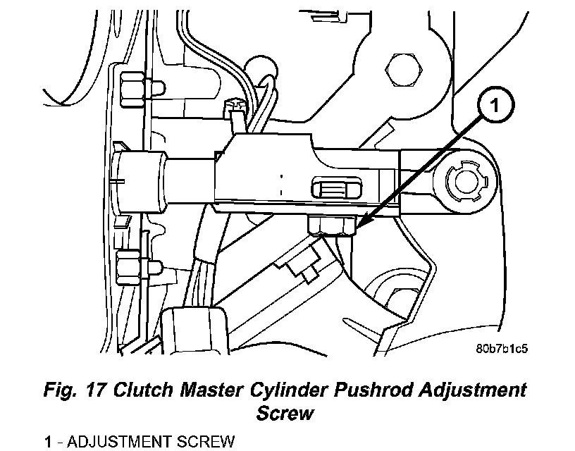 7. Connect clutch master cylinder pushrod. Gently lift clutch pedal upwards until the clutch pedal fully depresses the the upstop switch. Torque adjustment screw to 6 Nm (55 inch lbs.).