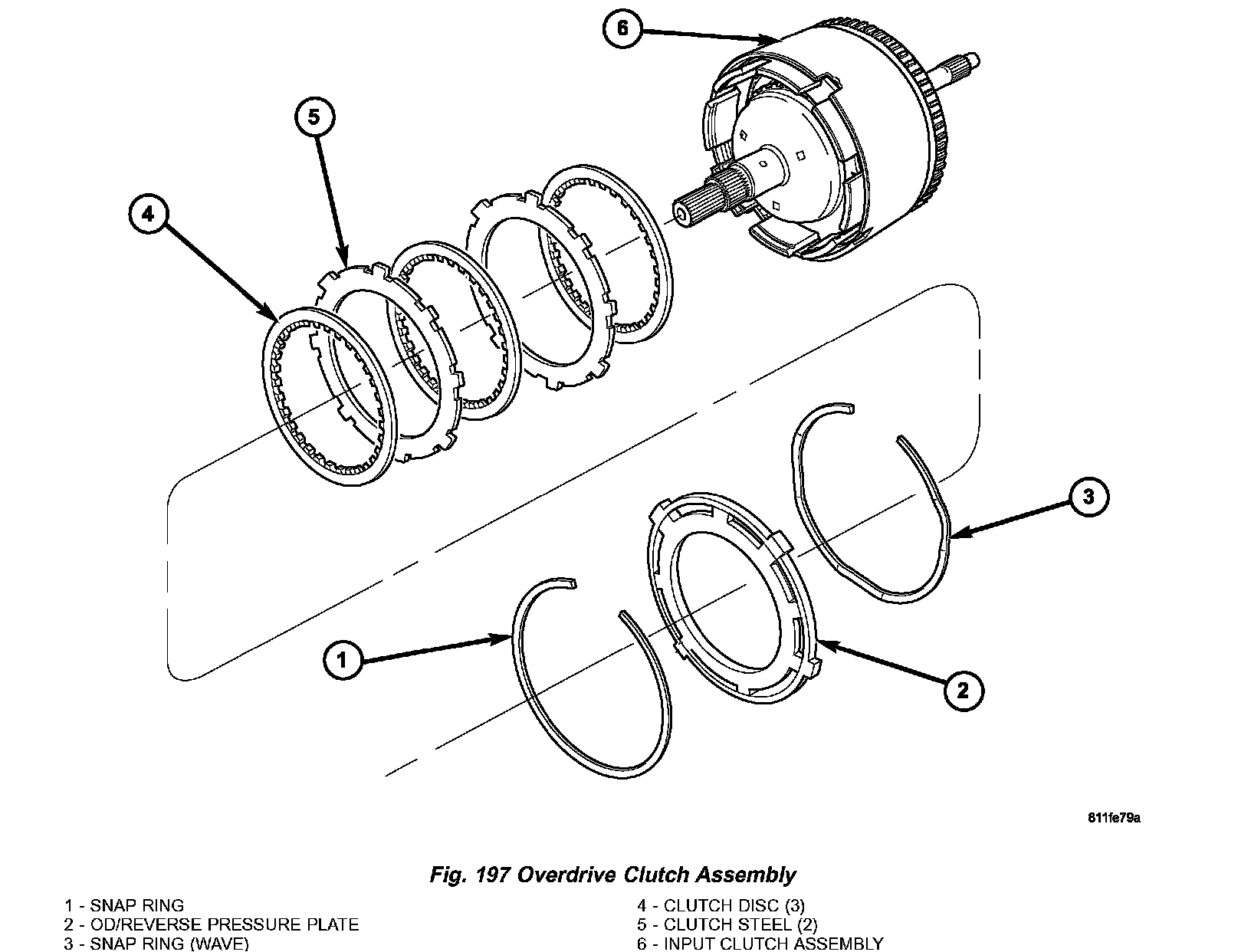 9. Remove OD clutch pack (Fig. 197). Tag components for assembly identification.