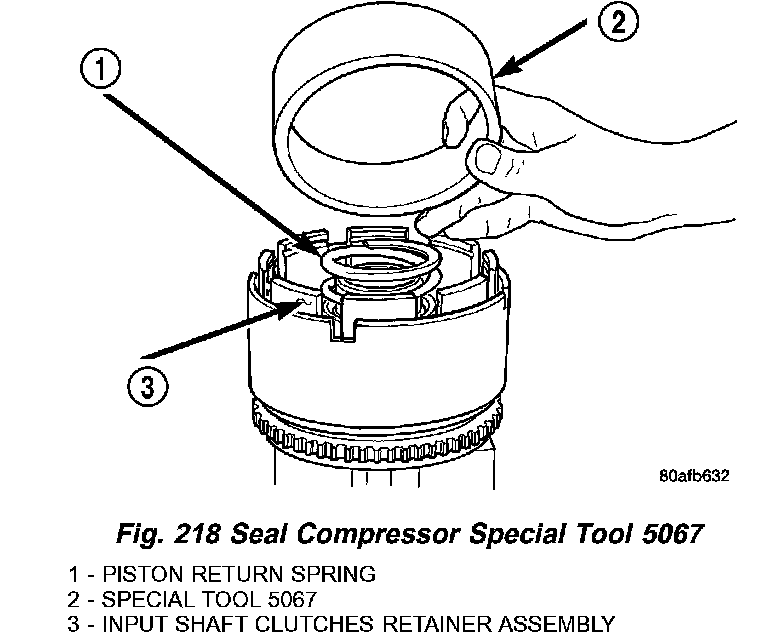 8. Install UD piston return spring and Tool 5067 as shown in (Fig. 218).