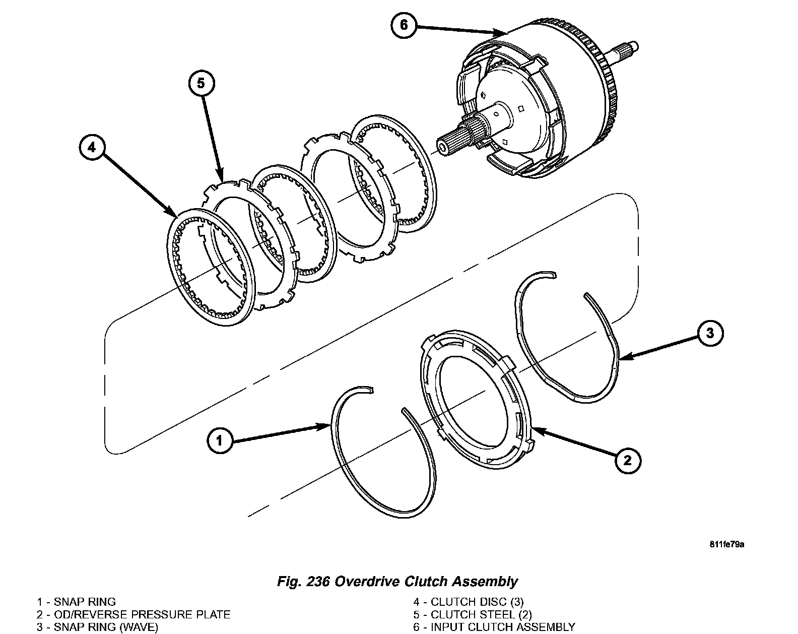 24. Install OD pressure plate flat snap ring (Fig. 235) (Fig. 236).