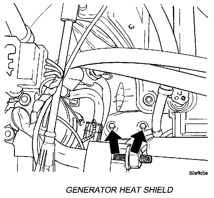 22. Install the 2 bolts to the heat shield on the generator and tighten bolts to 4.5 Nm (40 in. lbs.).