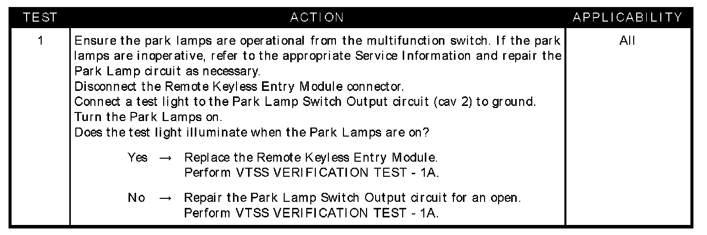 PARK LAMPS FAIL TO FLASH DURING ALARM