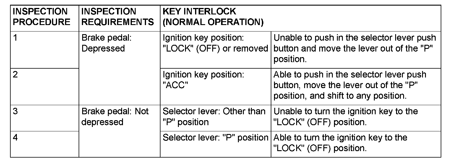 KEY INTERLOCK MECHANISM CHECK1. Perform the following inspection.