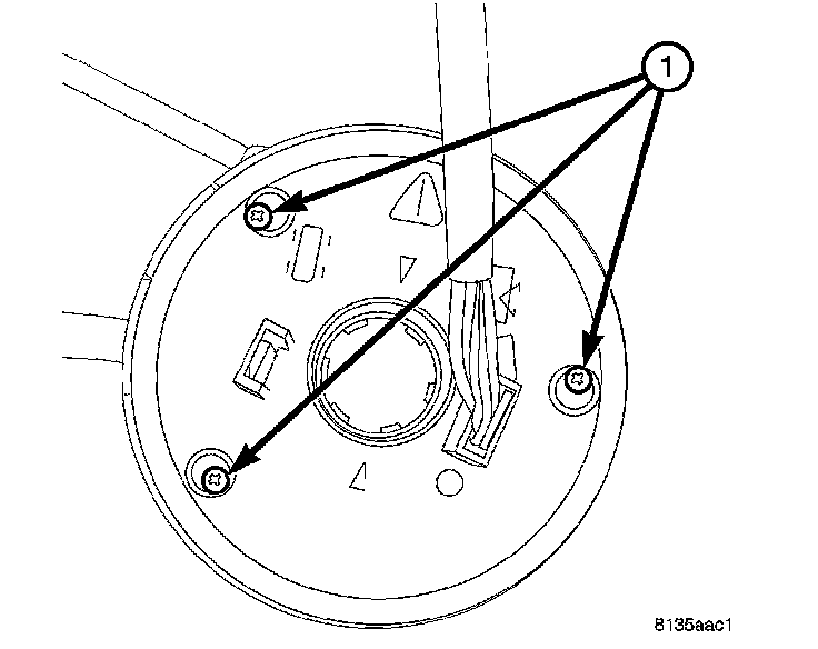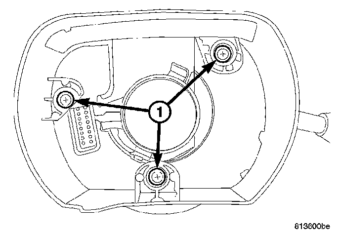 1. Remove the three clockspring screws (1) just far enough to release it from the SCCM. Leave them in the clockspring so it won't unwind.