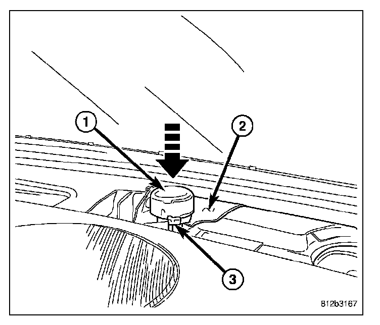 4. Gently push the sun sensor assembly into the instrument panel until the sensor snap clip retainers (3) are securely engaged.