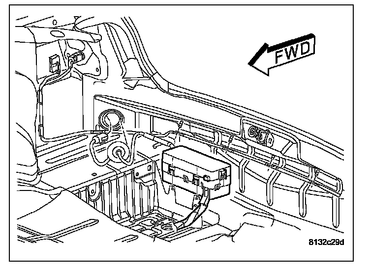 The majority of electrical system fuses and relays are housed in the two Power Distribution Centers (PDC). One is located in the engine compartment, combined with the Front Control Module (FCM) to form the Integrated Power Module (IPM). The other is next to the battery at the rear of the vehicle. The PDC located next to the battery is replaced only as part of the body wiring harness.