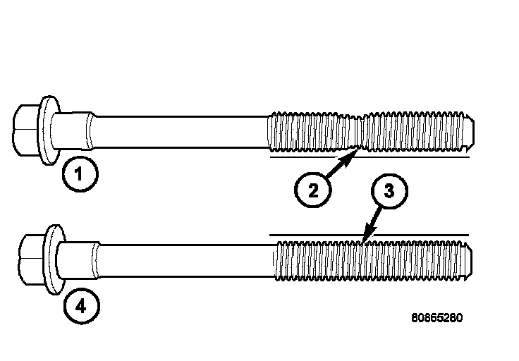 The bolts must be examined BEFORE reuse. If the threads are necked down the bolts must be replaced