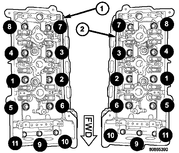 Step 2: Bolts 1-8 75 Nm (55 ft. lbs.)