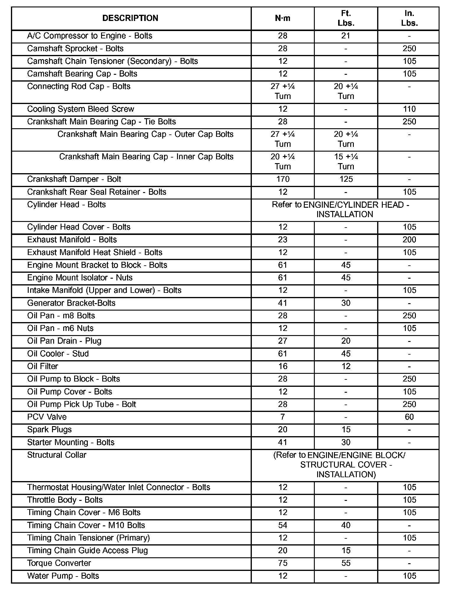 Engine Torque Specifications