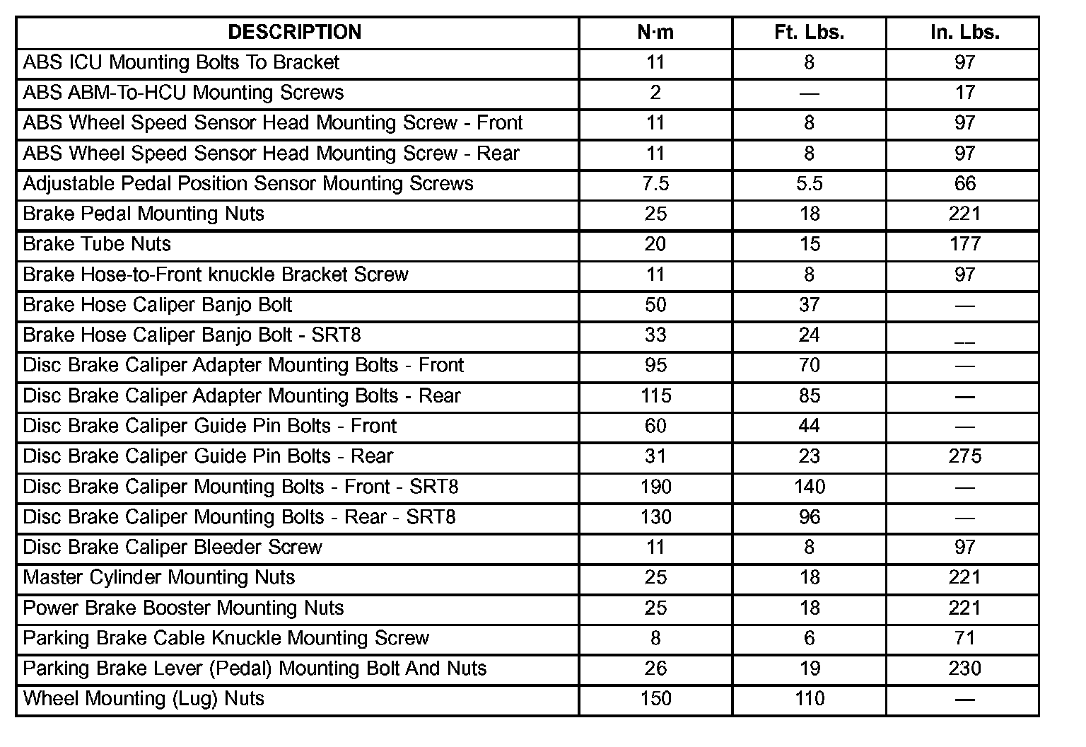 BRAKE FASTENER TORQUE: