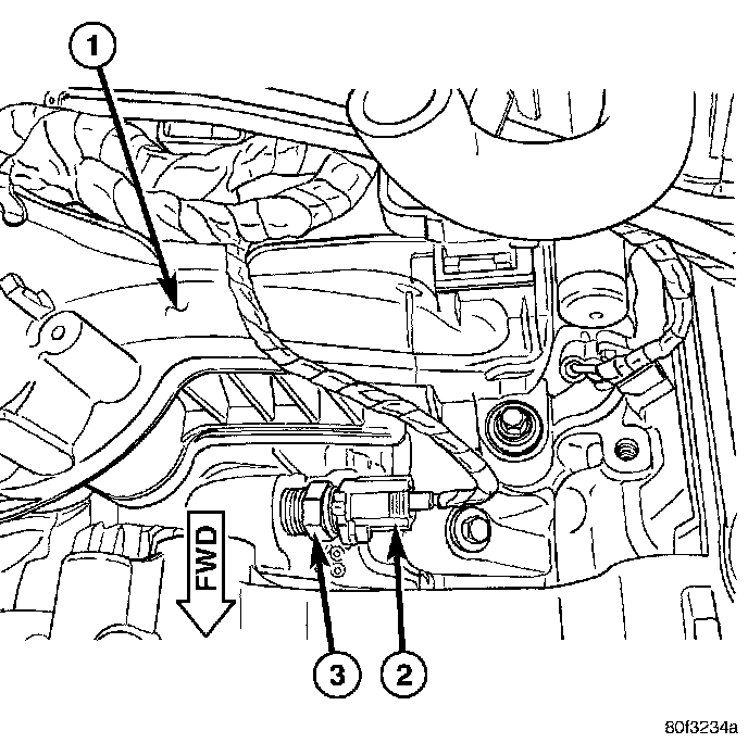 4. Disconnect electrical connector (2) from sensor (3).