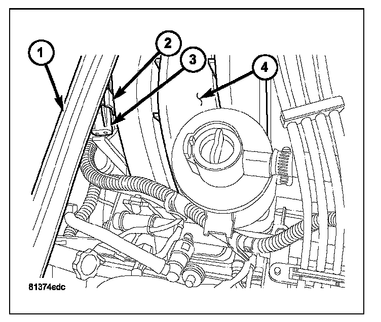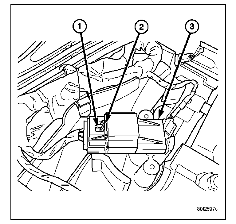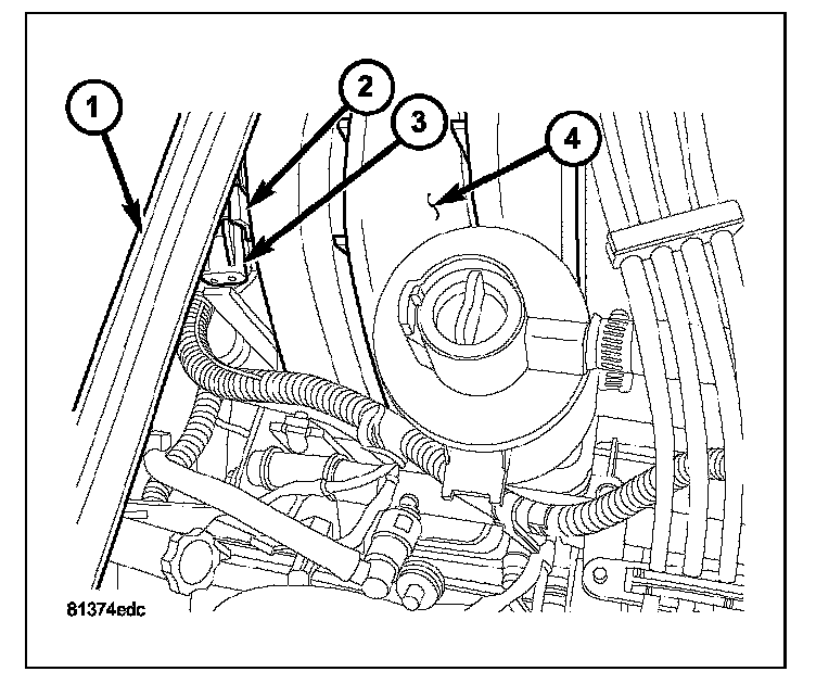 REMOVALThe Manifold Absolute Pressure (MAP) sensor (3) is mounted into the top/rear of the intake manifold (4) near the cowl/hood seal (1).