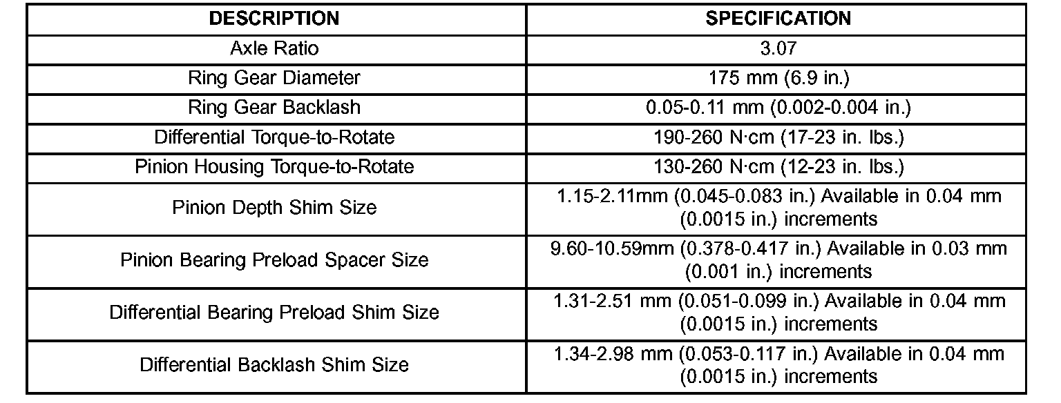 Torque Specifications:
