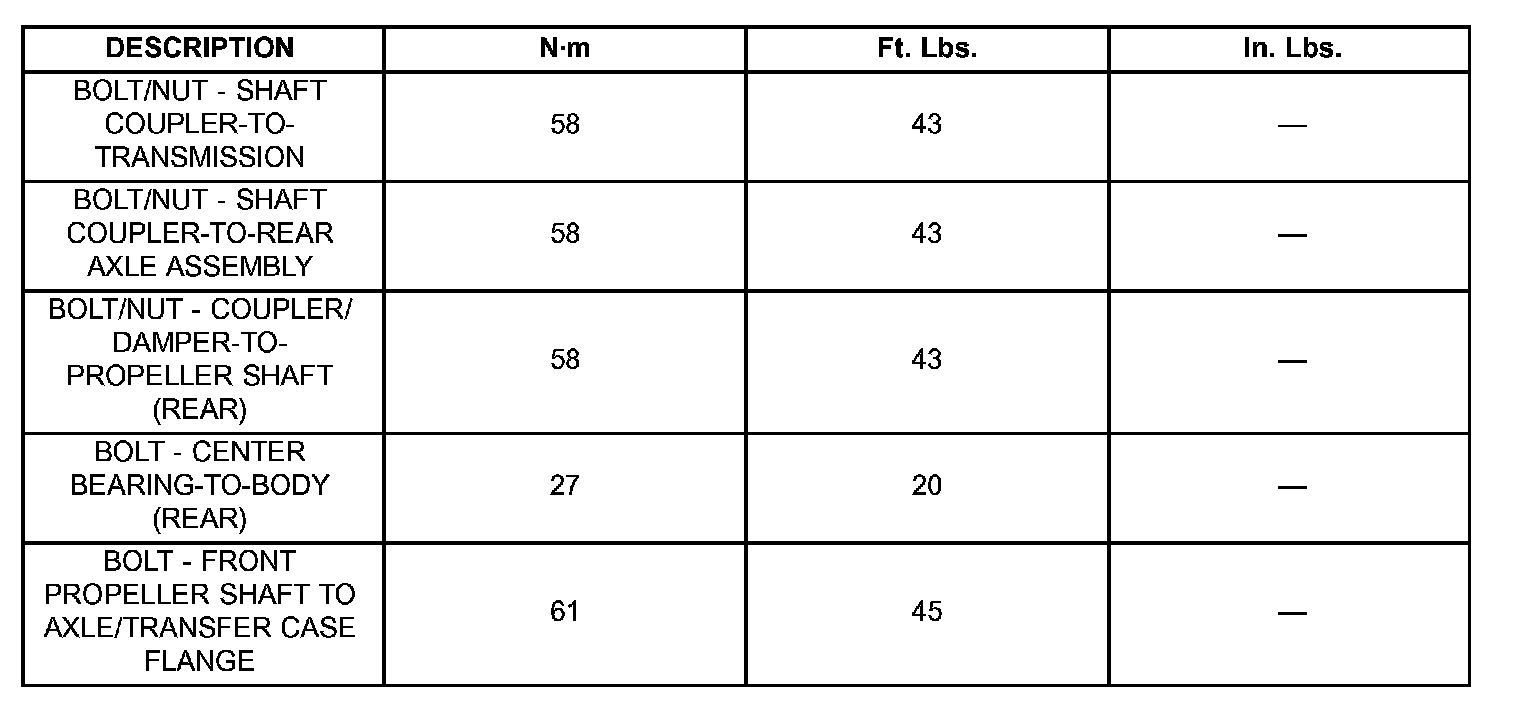 Torque Specifications: