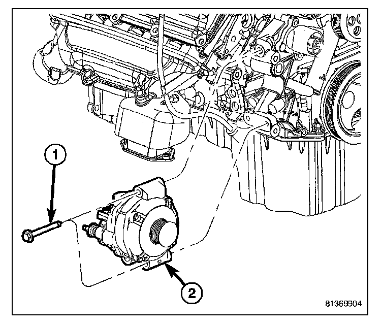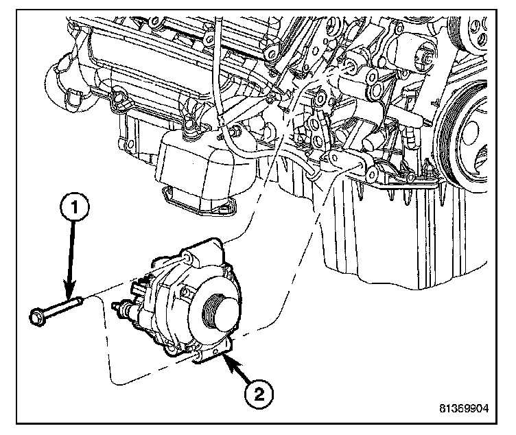 8. Remove 2 generator mounting bolts (1).