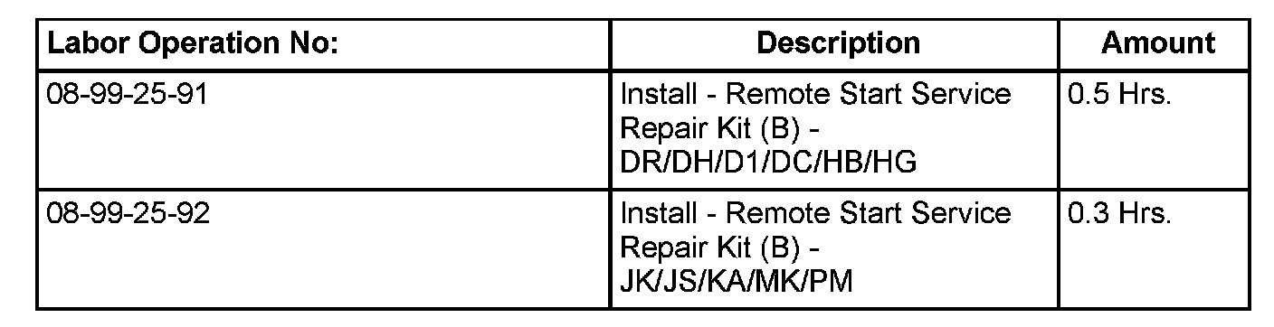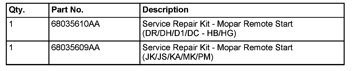 This bulletin involves the installation of a Mopar Remote Start System - Service Repair Kit.