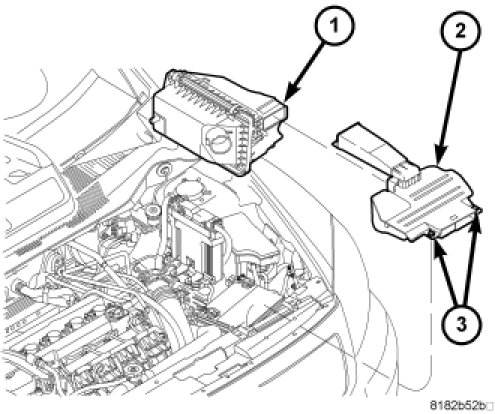 4. Insert air cleaner snorkel into airbox opening. Rotate the two retaining clips (3) and fasten into closure panel ensuring fit.